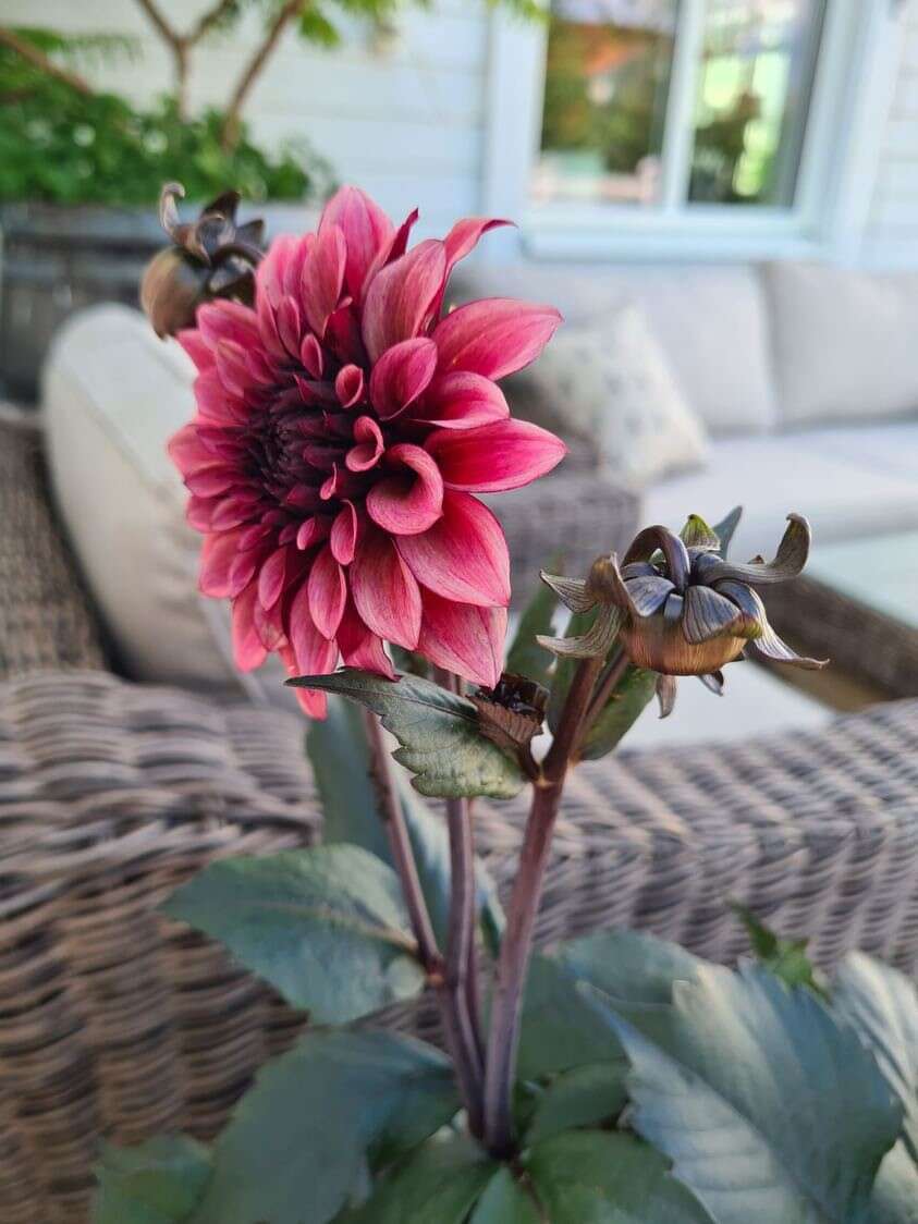 Sorten som egentligen måste ses för att kunna beskrivas men vi gör ett försök. Blommorna två färger och framsidan av kronbladen bjuder på en dov lila/rosa färg som kontrasterar vackert mot den mörka purpurfärgade baksidan. En sann favorit!