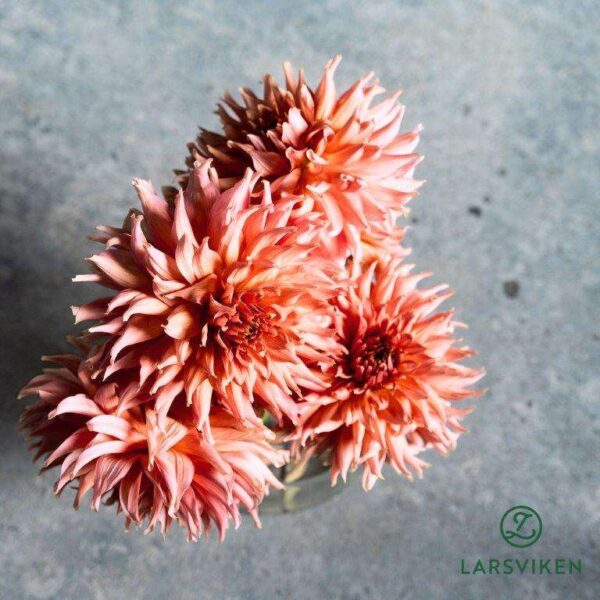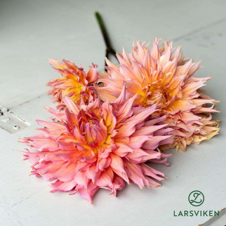 En krusig skönhet med den ultimata färgen som passar så bra till både pastell och mer intensiva färger. Blommorna blir stora och skiftar i olika toner av rosa, aprikos, korall och med en liten gnutta ljust ljusgul.