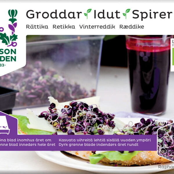 Med hjälp av groddboxen är det enkelt att grodda olika sorters fröer t.ex. alfalfa. Då fröna gror bildas mängder av nyttiga vitaminer och mineraler. På varm plats, 20-25 °C, är groddarna klara efter 5-10 dagar, beroende på sort. Groddar bör förvaras i kylskåp och de är då hållbara i 4-5 dagar. Tips! Vänd groddboxen upp och ned i kylskåpet vid förvaringen. Mått: 15 x 15 cm.